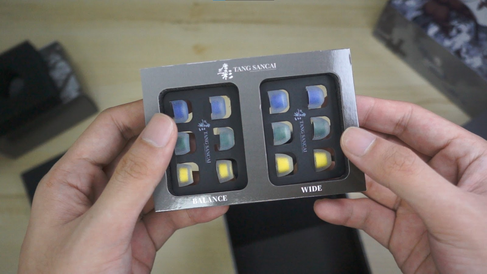 But the beauty doesn’t stop there, you open the box and you see that you’re given a total of 6 pairs of Tangzu Sancai tips! To be more specific, 3 pairs of Sancai Balanced and 3 pairs of Sancai Wide. I know many of you love the Sancai (including me) and that’s truly a treat to have! You also get your usual Tangzu black cable on 3.5mm and a leather button case.