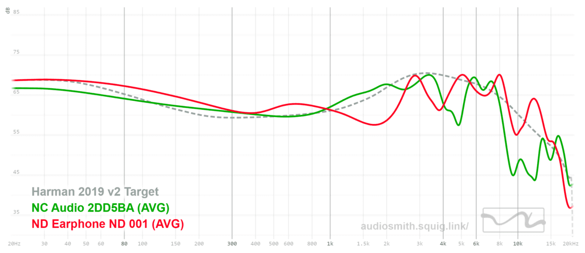 Not necessarily compared in price but more in tonality this set reminds me of the ND-001 ($50) The 001 comes across much darker with a bigger stage with more detailed treble although still veiled but the mids and bass detail of the NC Audio 2DD 5BA are much more present and the overall tonality comes across more balanced despite the treble being more recessed than the ND-001. If you are treble sensitive I think both of these are good options and this is a potential upgrade path if you are looking for another set that is tame on the treble but more correct sounding overall.